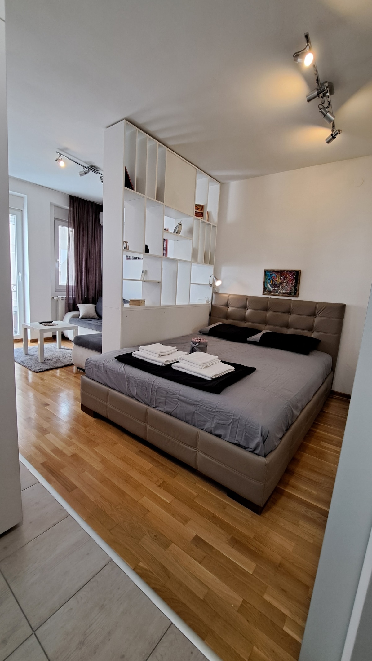 Comfortable and beautiful space for up to four people. It is located in the part of Belgrade that is only 6 km away from the city center. Next to the accommodation there is a shopping center. At 300 m there is Lidl, a tram turntable that takes you to the city center. Across the building there is Maxi, a pharmacy, a bakery. In the immediate vicinity there is also Beo shopping center.