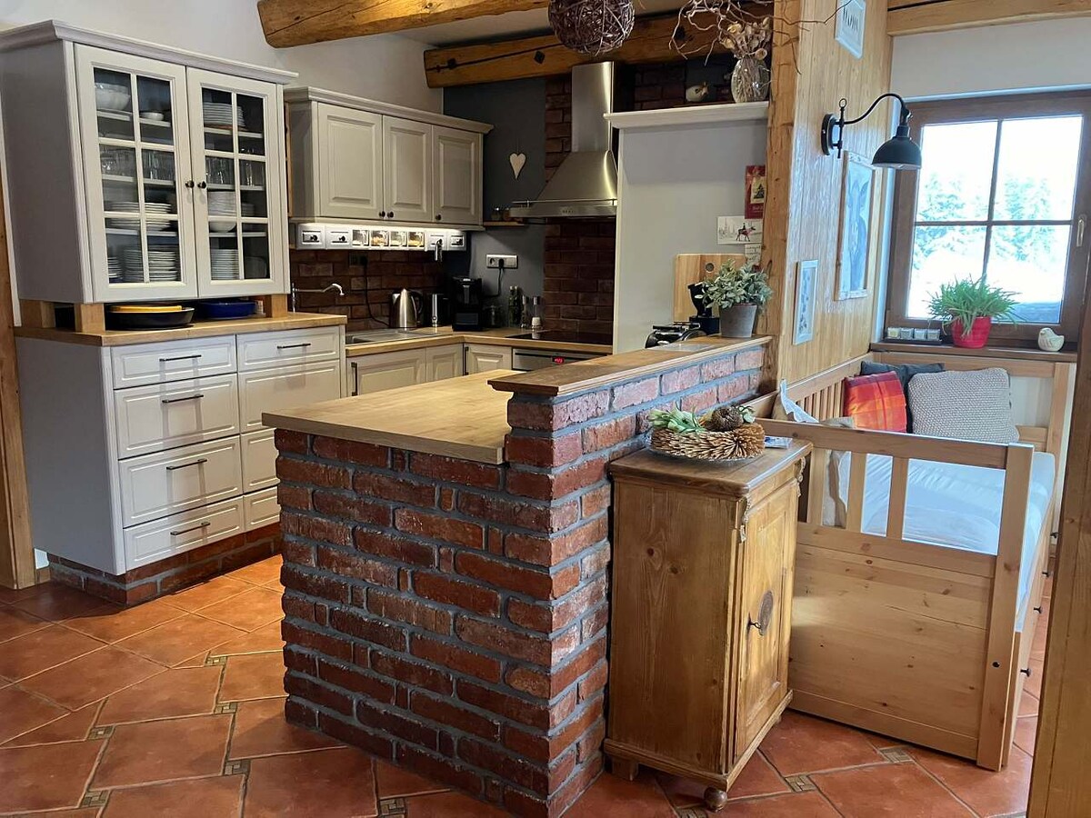 The newly renovated cottage, 15 minutes by car from the most famous ski resorts of the Krkonoše Mountains, in a quiet place within walking distance to the center of Jilemnice, offers not only great accommodation, but is also an ideal place to start your cycling, skiing and hiking trips in the beautiful nature of the Krkonoše Mountains. In the historic center of Jilemnice, you will also find excellent restaurants and other services to make your holiday more pleasant. Generously designed spaces are suitable for both families and a group of friends. "Come and stay"!
