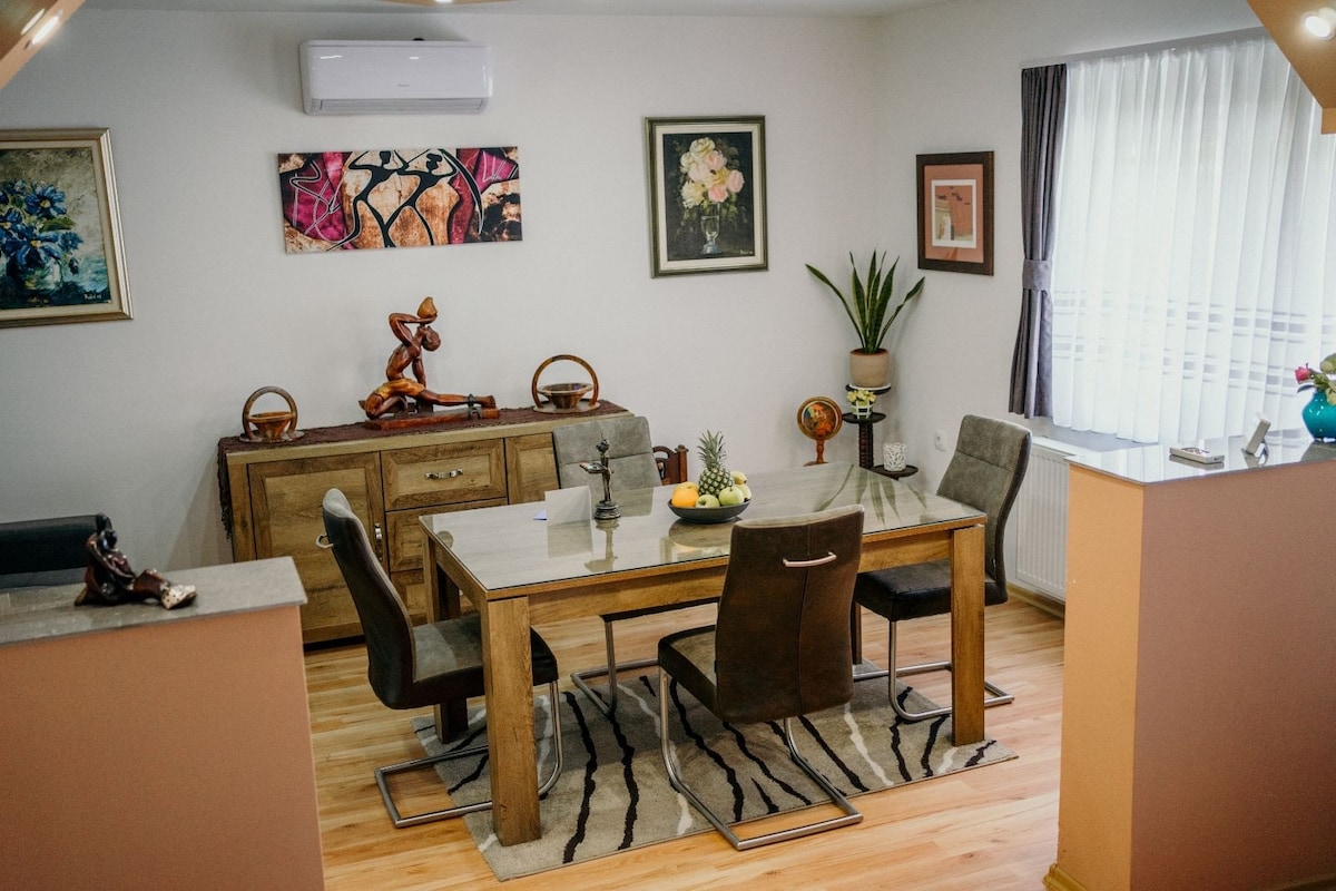 "Sunstation" apartment. Nice comfortable apartment 64m2 with two bedrooms, living room and kitchen in the house in a quiet location in the pearl of the Danube - Šarengrad. 30 km from Vukovar and 7 km from Ilok. The proximity to the Danube ,as well as a small lake not far from the house is ideal for all recreationists,for walking and enjoying the peace and nature. In front of the house there is a meadow with a playground for children and a place to socialize and barbecue. The building is located in an ideal position in a quiet and peaceful street. Up to 5 people,ideal for families.