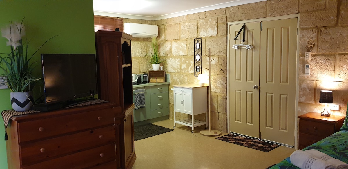 Get away to our little cottage in peaceful Moresby, a 15 minute drive from the centre of Geraldton on the coral coast. Watch vibrant sunsets paint the sky behind swaying trees - and sunrises if you’re game! - followed by starlit evenings and the dawn chorus over the Moresby ranges. Discover a cozy haven with a private verandah and garden, where you can unwind amidst friendly wildlife. Perfect for nature enthusiasts seeking solitude and natural beauty. Local government approved and compliant