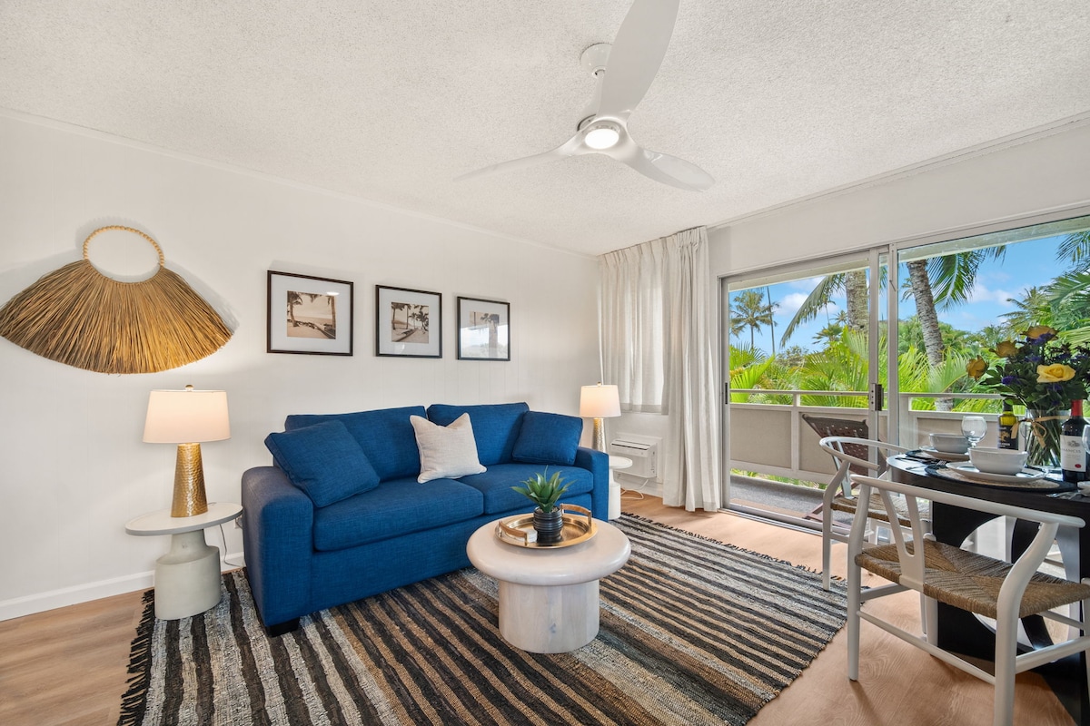 Welcome to our charming one-bedroom condo by the beach in the heart of Kapaa next door to Coconut Marketplace. This newly remodeled one-bedroom offers a fully equipped kitchen,a furnished lanai,a king-size bed, and a sofa sleeper that can accommodate up to four guests. "It was spacious, beautiful, cozy, clean and had everything we needed and more" Maxime "In the center between the north side and the south side of the Island, making it a great fit for whatever activities you want to do" Todd