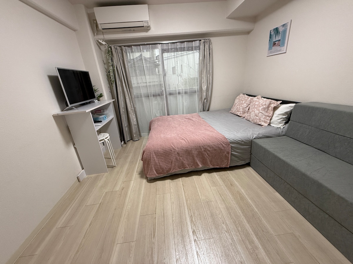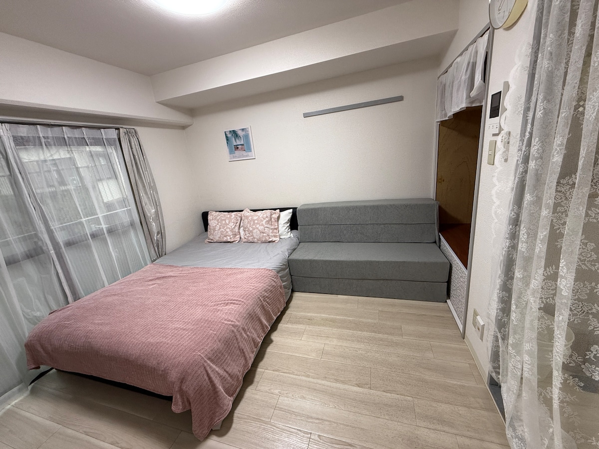 3min walk station/4 people/wide queen bed & sofa