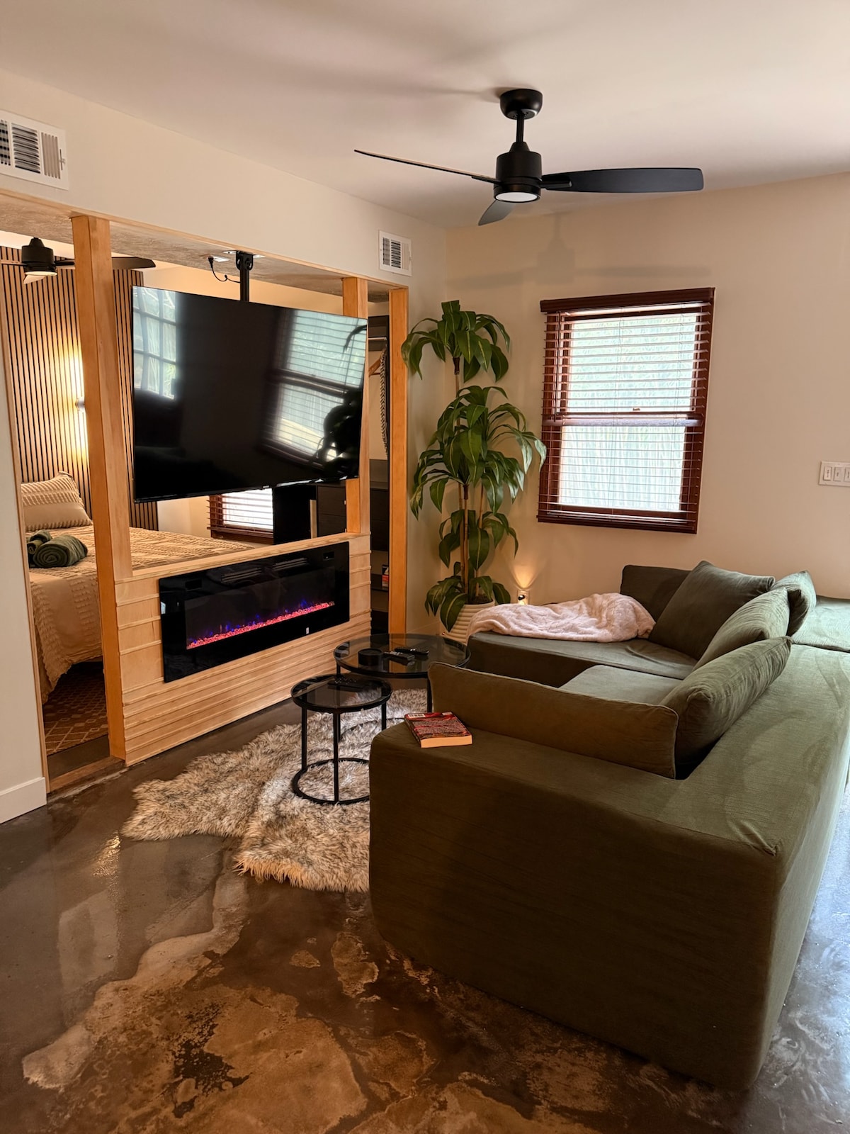 Discover your peaceful escape at Kingsrun Estate — a cozy, luxe cabin on 18 acres with a serene pond and firepit. Sip morning coffee on the patio as gentle breezes soothe your soul. Perfect for romantic getaways, family retreats, or remote work — just 40 minutes from Atlanta. Cozy bedrooms, fireplace, and modern comforts await. Book your sanctuary today! Ask about extended-stay discounts — and settle into your own quiet slice of nature, just 40 minutes from Atlanta.