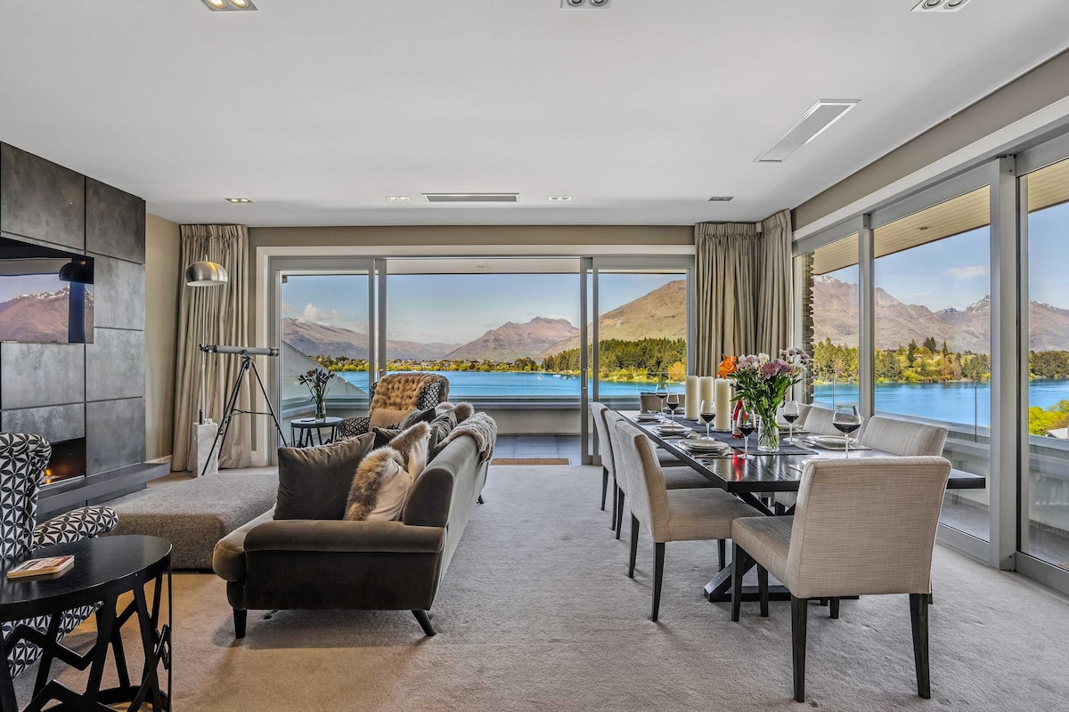 Lakeshore Springs luxurious ski accommodation is positioned at the heart of Wanaka’s waterfront. Blended unobtrusively with the dramatic alpine environment, capturing the very essence of Wanaka, each 3 bedroom luxury holiday apartment boasts spacious luxury open plan living and the best location on Lake Wanaka. This luxury Three Bedroom Apartment features fantastic lake and mountain views, and is ideally located just one minute from the lake, and five minutes walk from town.