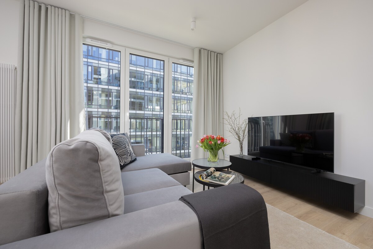 🌃 28th Floor Panoramic City Views 🎟️ 50% Off Monthly Stays (30+ Days) 🅿️ Free Underground Parking ⚡️ Dual High-Speed Internet 🔑 24/7 Security Guards & Self Check-in The apartment is located in a modern building, walking distance from the Palace of Culture. The size is 70sqm, has 1 bedroom and a spacious living room. It is close to the important points: 15-min walk to Złote Tarasy Mall and 8-min ride to the Old Town. Few steps away from the newest trendy dining complex: Fabryka Norblina.