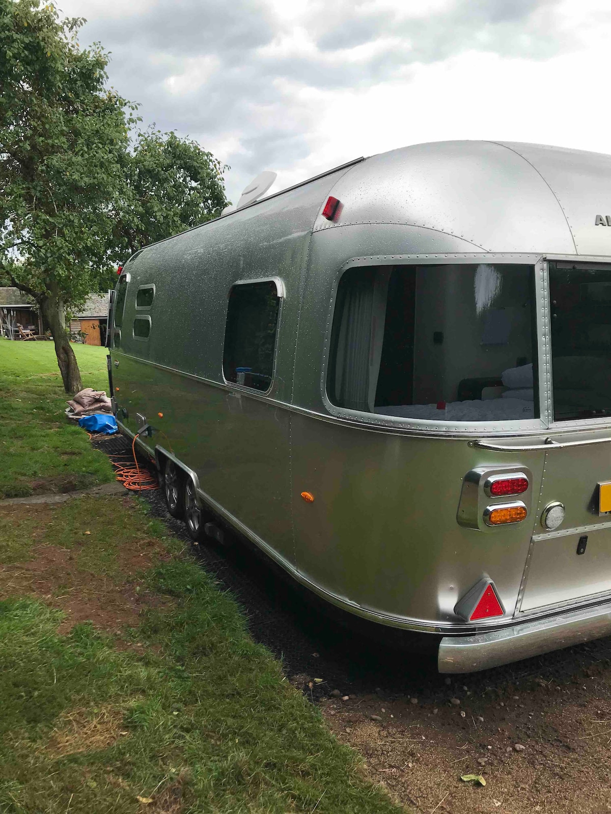 Airstream Ana is situated on our beautiful, peaceful campsite. Gorgeously cosy with woodburner and central heating, It has just been rebuilt and refurbished and has everything you need for a romantic and relaxing weekend. A 1960’s Silver Bullet is 6.2m long and 2.2m wide. It is self-contained with a sink, (hot and cold running water) central heating, gas oven and hob, under counter fridge and pots, pans, crockery, utensils and cutlery. There is a flush loo and basin with hot and cold water.