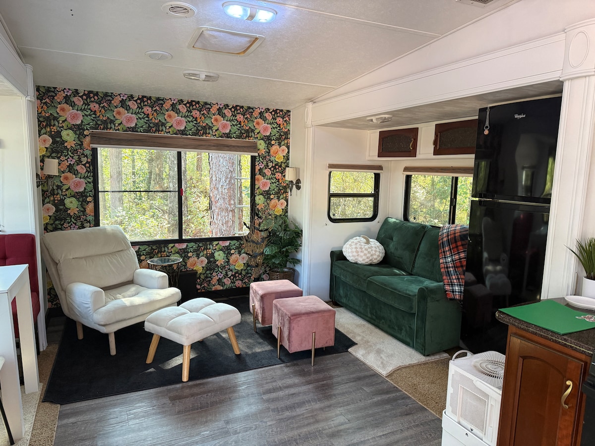 Located in a quiet woodland setting, just 25 minutes drive to the sugar-white sand & turquoise waters of the Emerald Coast. Easy access, but still tucked away for privacy. 🛏️ Sleeps: 4 (with optional couch pull-out and/or ottoman conversion bed available) 🛋 Layout: One private bedroom with queen bed, small living area, kitchenette, bathroom with shower 🌲 Setting: Surrounded by nature in a shaded area on our property 🐾 Pet-Friendly for good dogs 🔌 WiFi available at additional cost
