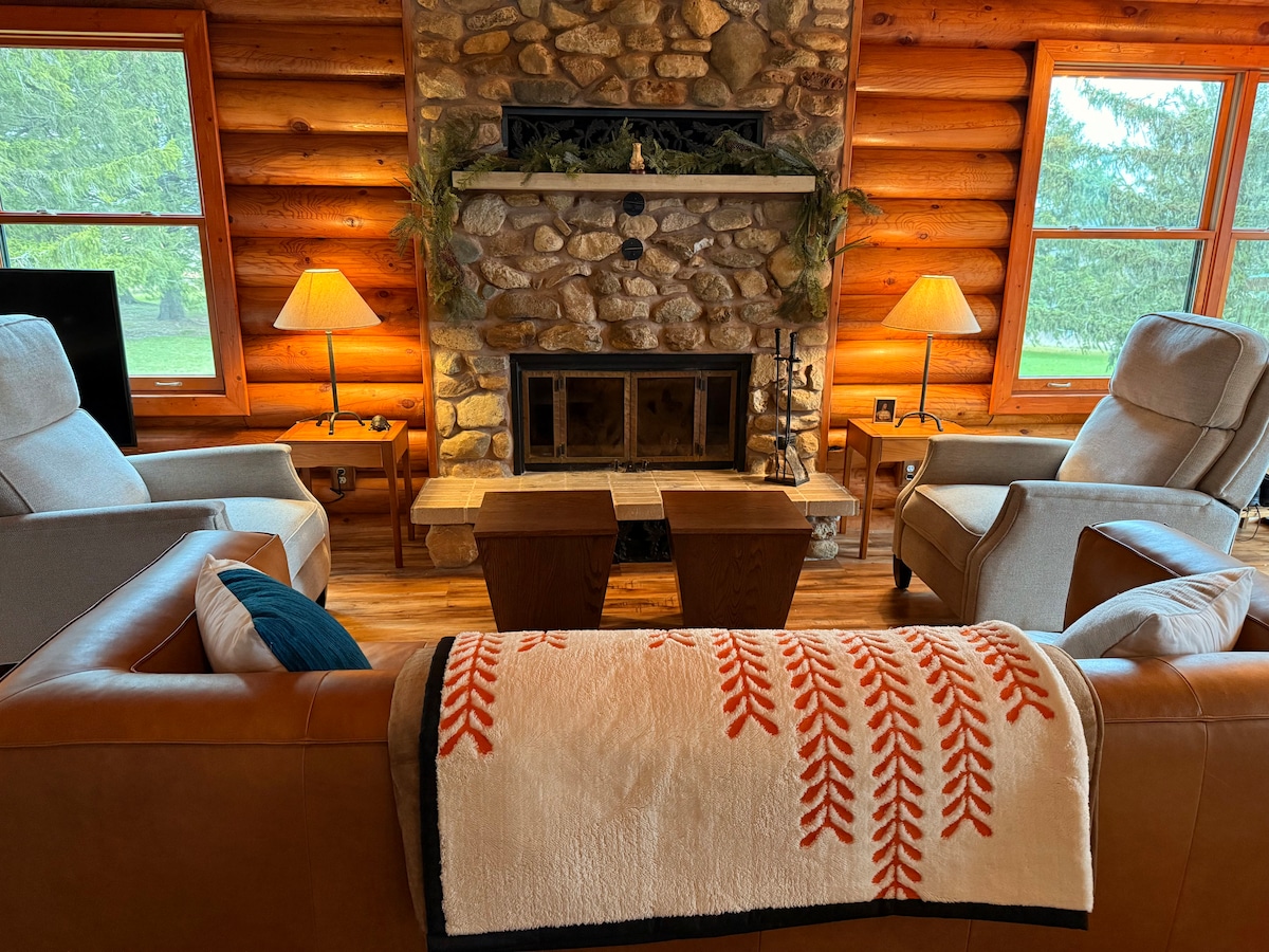 The Cabin, located on a private lane, is a cozy and roomy getaway nestled in the woods overlooking the Mighty Mississippi River. It offers a peaceful respite with a kitchenette, large fireplace, and a deck overlooking the Mississippi River. It has a bedroom with a queen size bed and two twins in the great room. Enjoy hiking, playing board games, cooking, grilling out, or a just lazy night of TV and popcorn by the fire.