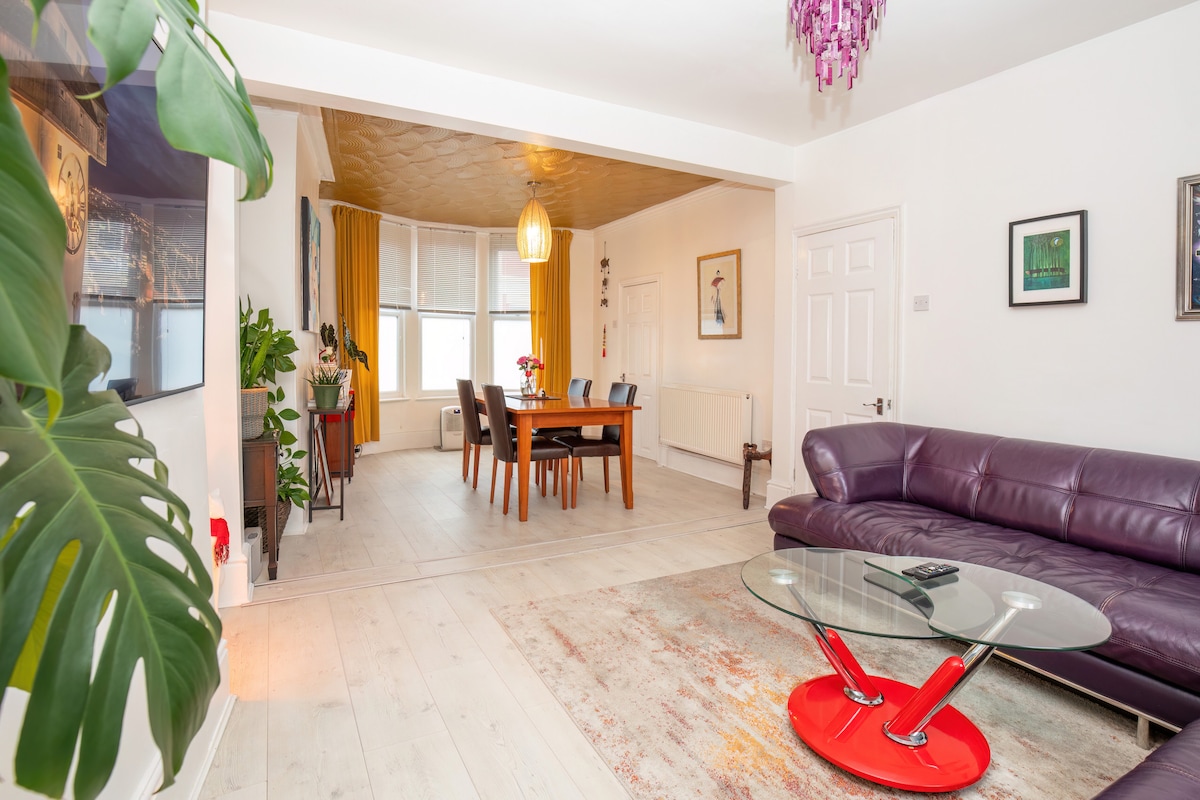 This quirky and stylish 3-bedroom Victorian end-terrace has excellent transport links, just a 10-minute train journey to Liverpool’s dynamic city centre. Only a short stroll away from the iconic Penny Lane, and near an abundance of eateries, bars, shops and parks. The front overlooks quaint cottages on cobbled streets and the second-floor bedroom boasts a beautiful forest mural. The charming backyard, with benches, water feature, chiminea and vibrant plants, provides a delightful place to sit.