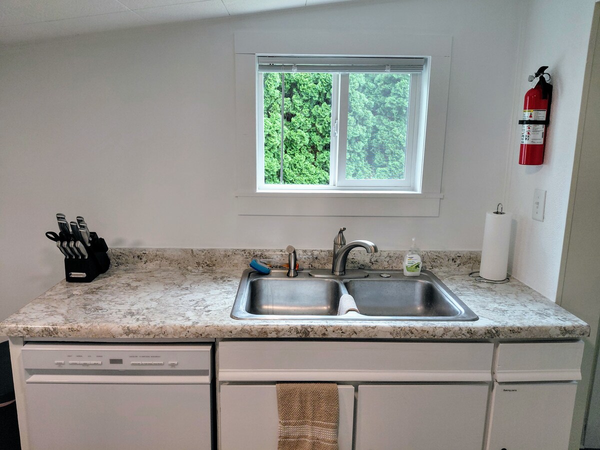 Built in 1900 and renovated in 2022, Suite 2 shows little signs of the once quirky old space. Completely private, with all the amenities, it boasts a spacious bedroom, 1 bathroom, a fully equipped kitchen, dining area, living room with a desk for workspace, and a laundry room. While you're here, we hope you are able to relax and enjoy the well lit deck along with a cup of freshly roasted coffee, which we are happy to have provided.