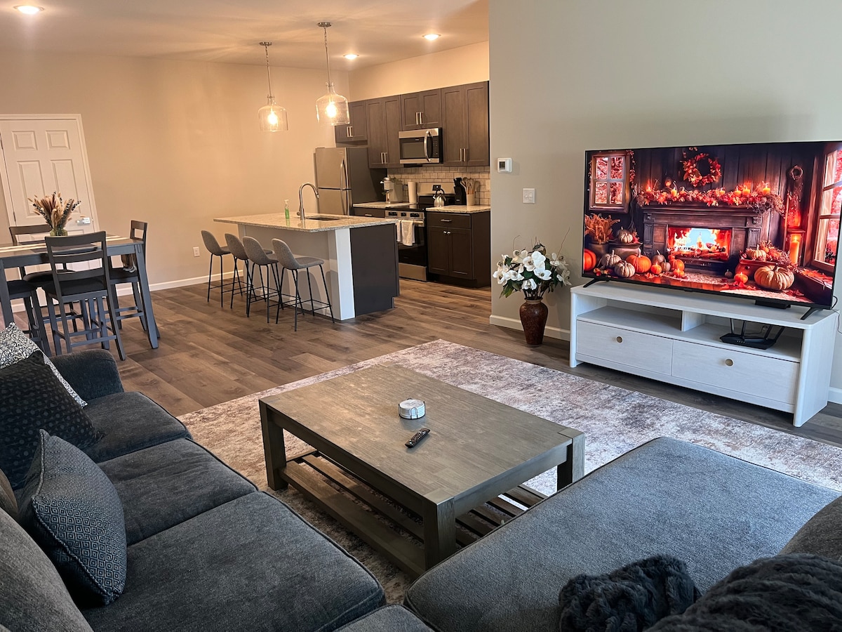 Quiet Upstate Sodus Point, Lake Ontario & Finger Lakes Area for winery tours! Go hiking parks, boating, fishing, and dining opportunities for a relaxing weekend. This 2-level 1250 sq ft 2-bedroom duplex with all new flooring, appliances including new washer/dryer in the basement. There is a 55 inch tv to watch football or bring your favorite programming with you on the Roku remote. Walk to the public boat ramp and see Sodus Bay! Walking into the village Capt. Jack's Bar & restaurant is 1.3 mile.