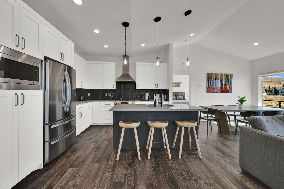 This Huntsville vacation rental on the edge of Pineview Reservoir gives you year-round access to the beauty and adventure waiting in Utah’s Wasatch Mountains. This modern and spacious 4-bedroom, 4.5-bathroom townhome features a sleek interior, mountain views from the covered balcony, and proximity to 4 different ski resorts. Spend a day on the slopes at Powder Mountain or Snowbasin Resort in the winter, relax in the sand at Windsurfer Beach in the summer, or unwind at home and play board games.