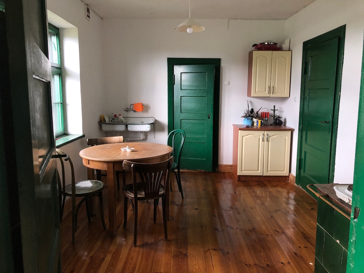 A charming summer house with an open bedroom space upstairs. Perfect for people looking for direct contact with nature (meadows and forests all around) surrounded by storks, horses and cows