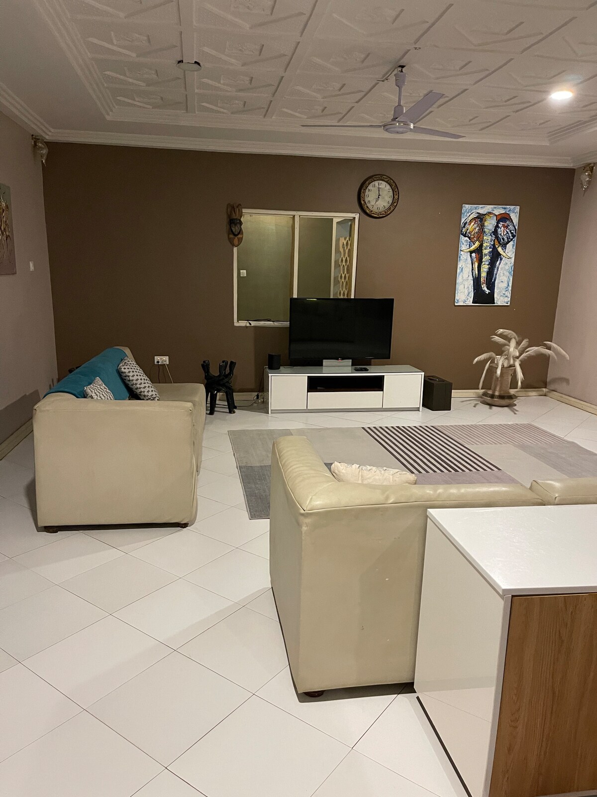A warm smoke-free studio apartment, beautifully furnished with a clean bathroom. It comes with free high-speed Wi-Fi, Air conditioning, a 55-inch Smart TV and a fully equipped kitchen with a washer. The unit has a balcony with outdoor furniture for your relaxation. The Bantree apartment is only 5 mins drive from the Int'l airport. The property is very convenient to shops, restaurants, clubs, pub/lounges, Labadi beach and interesting places.