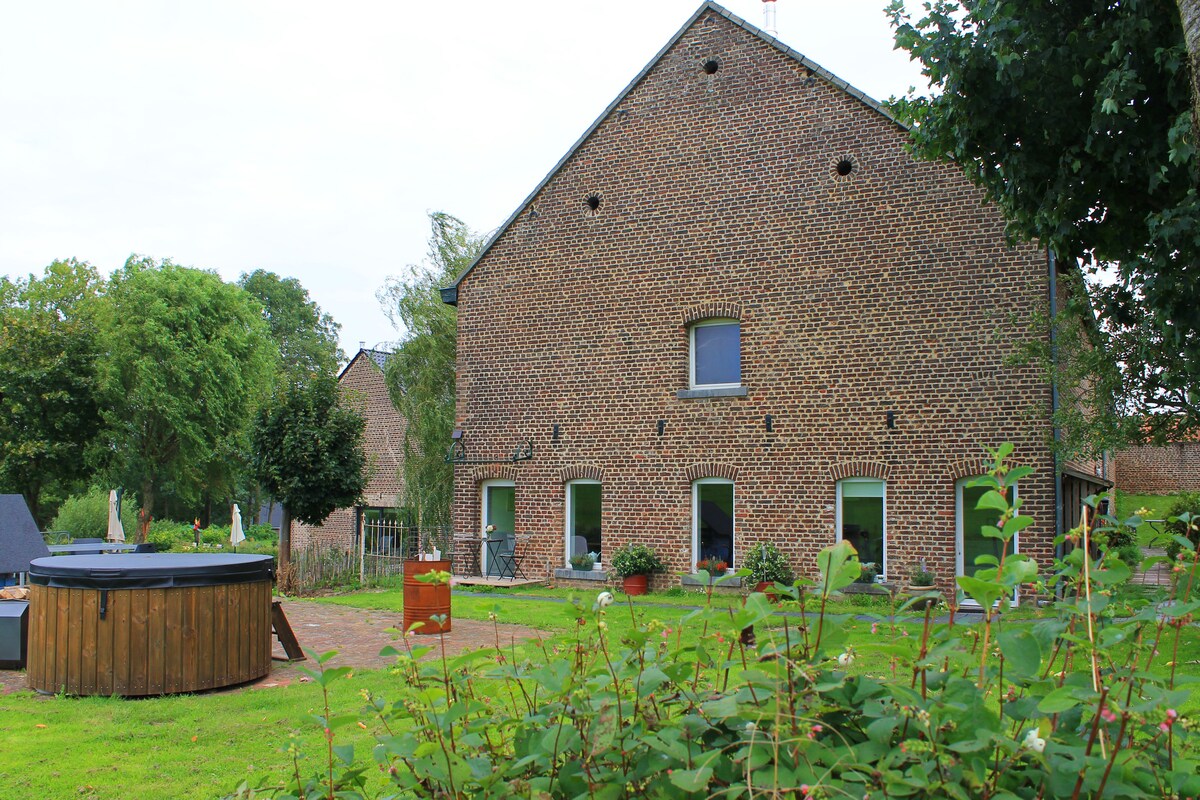 Large studio in a completely renovated 18th century farmhouse (53 m²). Equipped kitchen with dishwasher, microwave, oven, electric stove, percolator, toaster,... Very good quality bed (1.6 m wide), single bed 90 cm. Web: Wi-Fi Garden equipment for summer. Wood fireplace. Central heating Bike or motorcycle garage, Private parking, Ski storage. 25 km from the ski slopes. Close to Maastricht, Aachen, Liège Close to Ravel Bike Path Line 38 Golf at the Village 5 Km