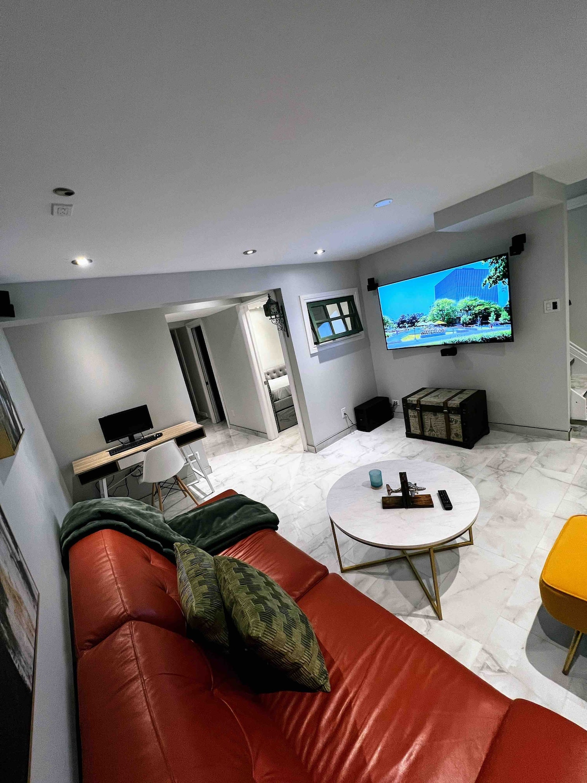 Welcome to this luxury oasis in Downtown Kitchener! • King Bed: Enjoy the night with a comfy memory foam topper • In-Home Movie Theatre: Kick back in recliner seats for a memorable experience • Prime Location: Steps to Tim Hortons, a grocery market, and much more • Thoughtfully furnished: Spacious L-shaped couch and enjoy the TV in the bedroom • Amenities: Bowling, gym, hot tubs, pool, BBQ area, lounge, and much more • Self-check-in: And enjoy the entire place to yourself