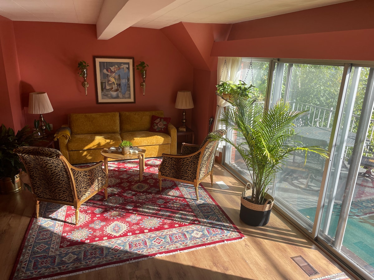 A Secret Cottage hideout in the City! Enjoy your serene escape in the heart of Kitchener with friends and family! -Unique 3-bedroom, 2-bathroom cottage is a hidden gem that blends nature-inspired living with modern convenience. Stunning Backyard comes with -Firepit -BBQ hut -Water Cascade -Hammock & -Treehouse -Outdoor dining area -Plenty more outdoor seating Come indoors to enjoy -Spotless Kitchen -Theatre Room -Minibar -Fireplace -Cozy family gathering spots