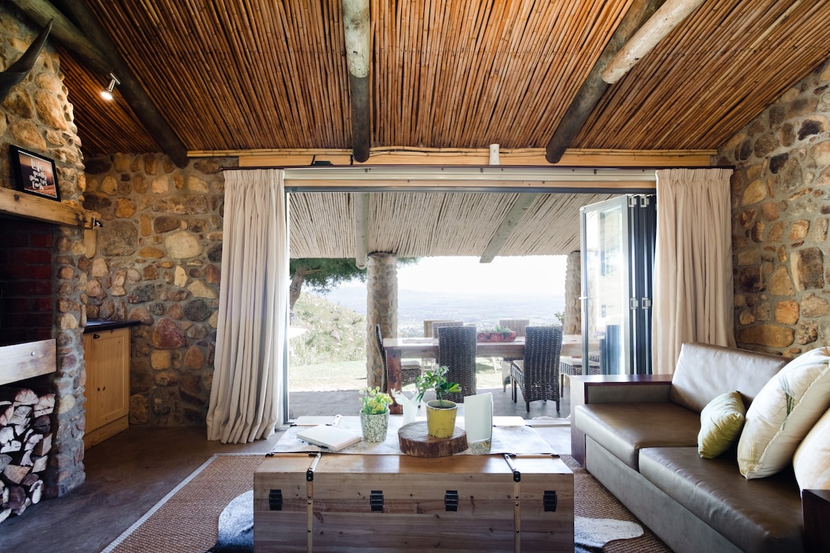 Situated on foot of Bainskloof Pass in Wellington, away from everything and surrounded by pristine fynbos nature, this Logcabin with a Rondavel offers true countryside feeling with a fantastic view and complete privacy. A luxurious escape into Cape Winelands, an hour drive from the city of Cape Town. This property has its own power supply and is protected by an electric fence (no baboons). A gravel road leads up, which doesn't require a 4x4 or SUV only good ground clearance of the vehicle.