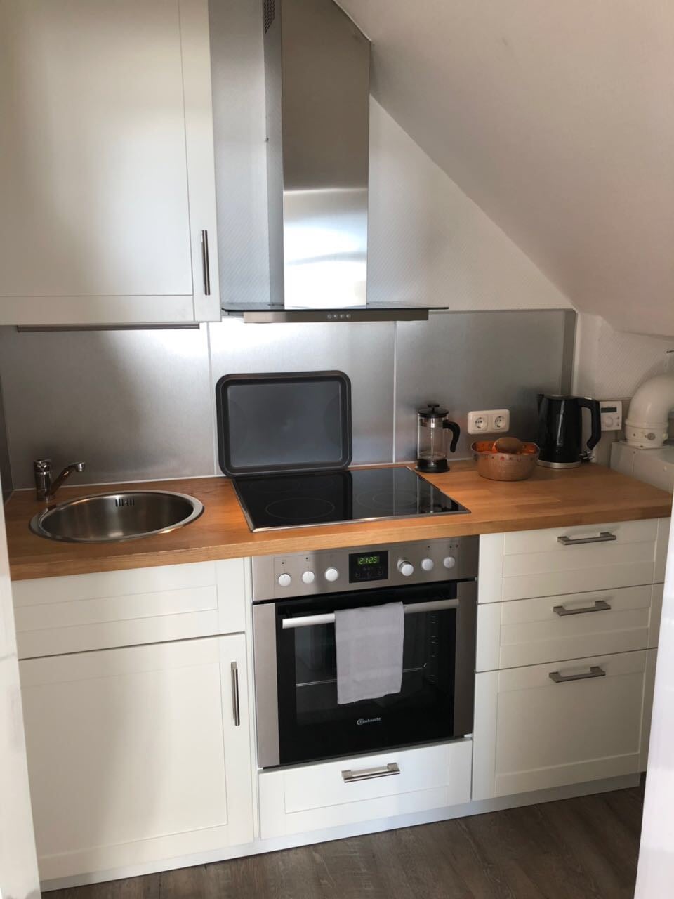 The house lies not far from the Nord-Ostseekanal. We have a terrace and a garden to spend time and make breakfast in open air, if the wheather allows it :-) It's available for groups, families and cyclists. Till now the bathroom only can be reached through the doublebed-room. We're searching for another solution. In 125 qm you have much space. Shops for daily needs are nearby. And there are many possibilties for day trips.