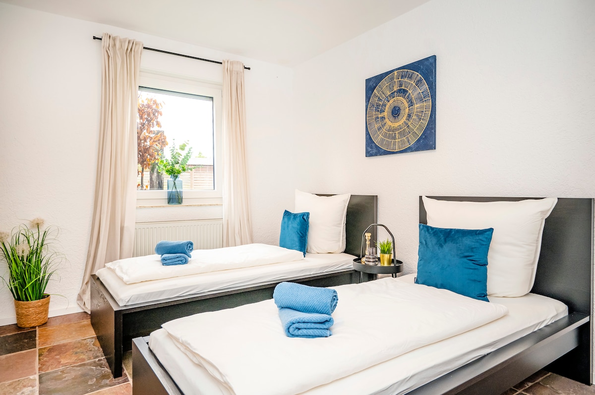Our apartment is a small, attached cottage with terrace and garden. It is located in a quiet residential area in the center of Raesfeld-Erle, a 360-soul village on the edge of the Ruhr area. Here you combine Münsterland flair with everything that the big metropolises offer. In Erle stands the oldest oak in Germany. A chestnut avenue, the rustic schnapps distillery and the old windmill also invite you to cycle and walk on numerous hiking routes.