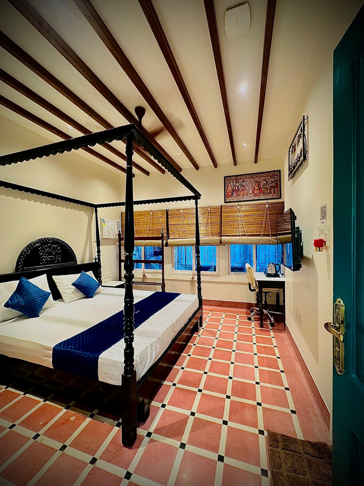 Welcome to Shantiniketan! I am Riya, your proud host "Shantiniketan" is a UNESCO world heritage site & synonymous to the great bengali nobel laureate Rabindranath Tagore. It was built on his ideas and pioneered by the Bengal School of Art The flat showcases artefacts of Shantiniketan within an old styled "bengali bari" (house) with four poster antique bed, on red oxide floors known as "Laal Cement", unique only to Kolkata We have multiple traditional flats across 2nd fl - check my listings.