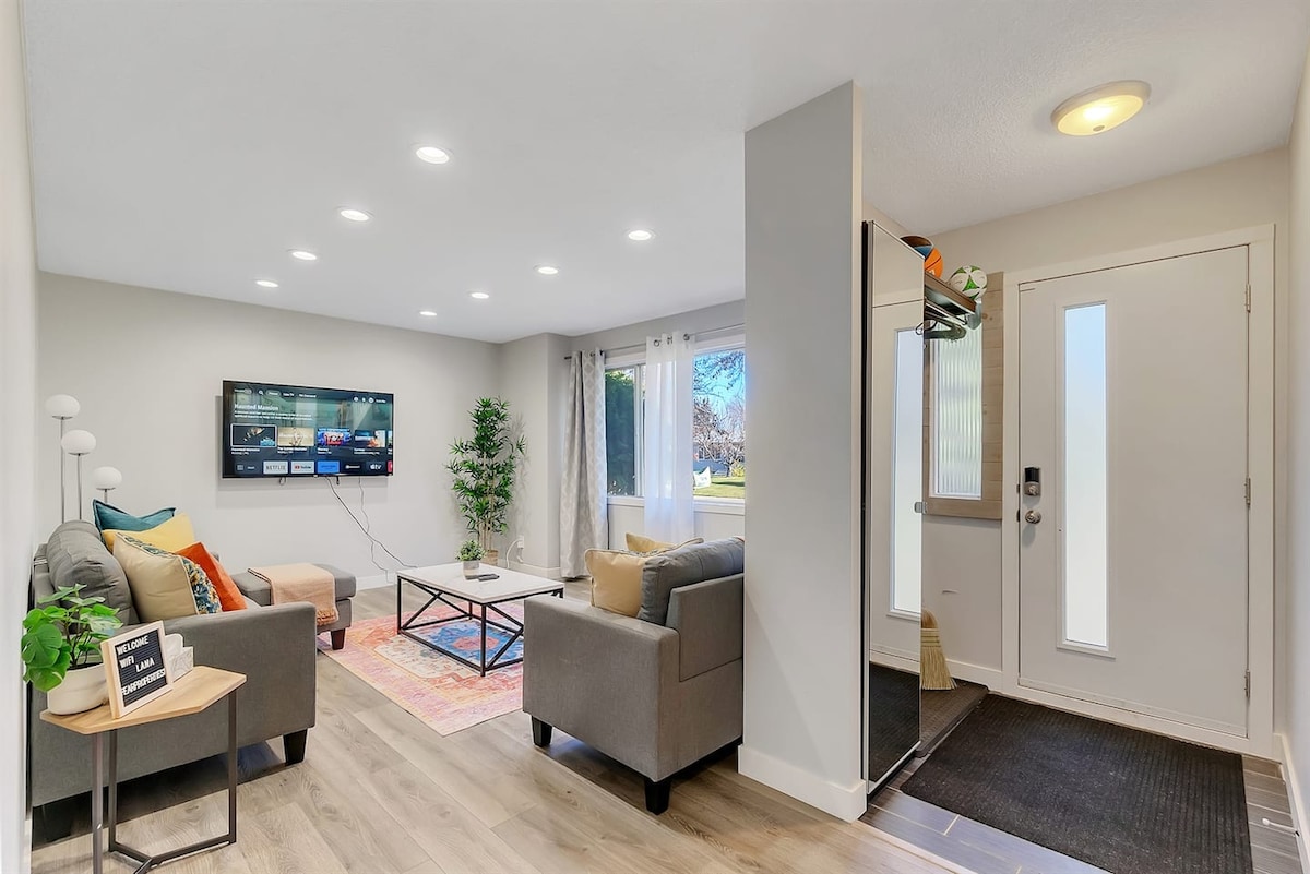 Your home away from home! Welcome to our recently renovated, bright, and stylish 2 bedroom basement suite. Centrally located to access the south side, West Edmonton Mall, downtown, and the beautiful river valley. This is a private suite in a quiet, mature neighbourhood that can comfortably accommodate up to 4 people. Kitchen has everything you need to prepare your own meals and there's plenty of room to relax in the living room, bedrooms, and the outdoor space.