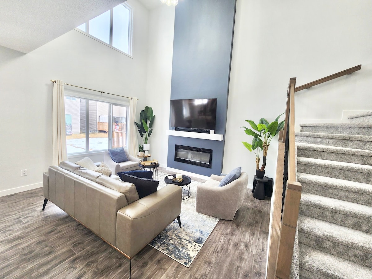 Nestled in Edmonton's delightful Keswick neighborhood, our freshly built two-story house is a blend of elegance and comfort, designed to make your stay unforgettable: Newly Constructed 2-Story Home Approximately 1400 sq. ft. Bedrooms: 3 (Master with King, 2 Rooms with Queen Beds) Bathrooms: 2.5 Air Conditioning Double Garage Entertainment: Apple TV Super-Fast WiFi Laundry Facilities On-Site Fully Equipped Kitchen 15 Minutes from Edmonton International Airport Proximity to Prime Shopping Area
