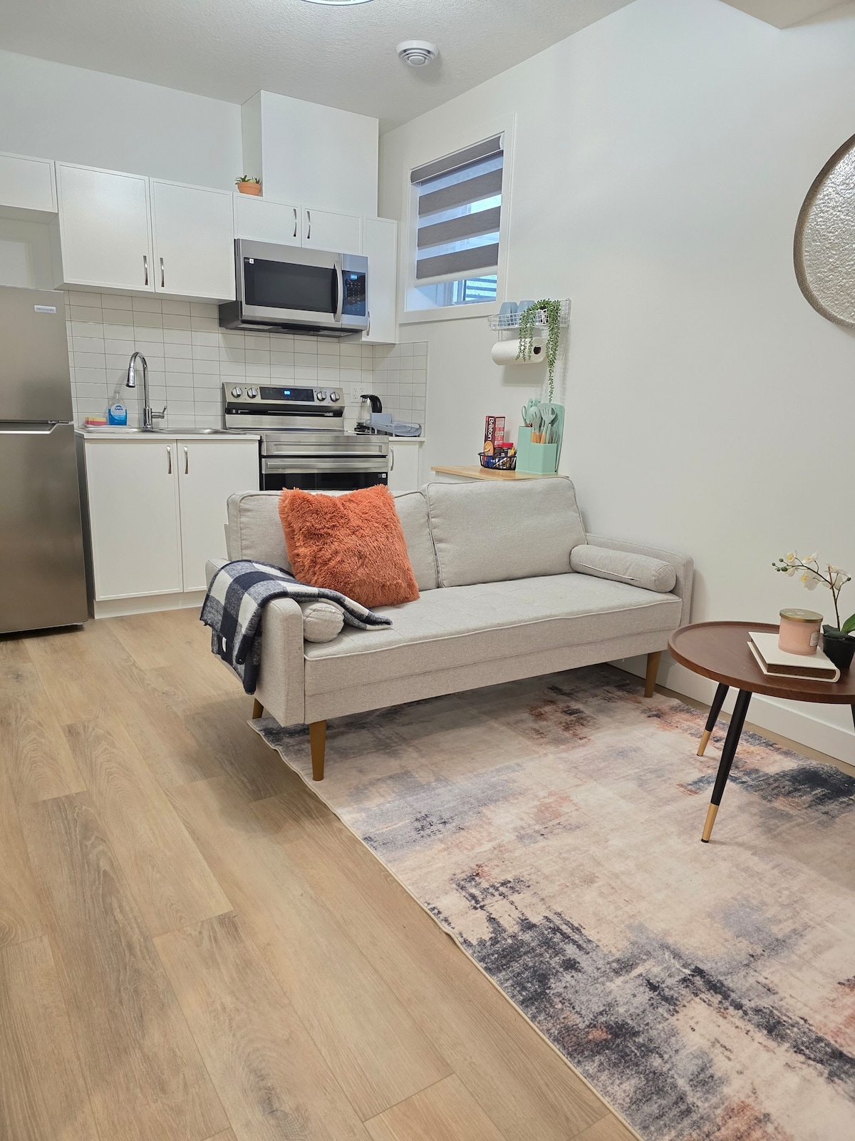 Relax in our calm and stylish private basement suite, offering plenty of space and all the comforts of home. Enjoy your favorite shows on the Smart TV in the cozy TV lounge, stay connected with fast Wi-Fi—perfect for remote work, and rest easy with free on-site parking. You’ll love the convenient location—just 8 minutes to West Edmonton Mall and only a 2 minute walk to the bus stop, 5 minutes to River Cree and 20 minutes to downtown.