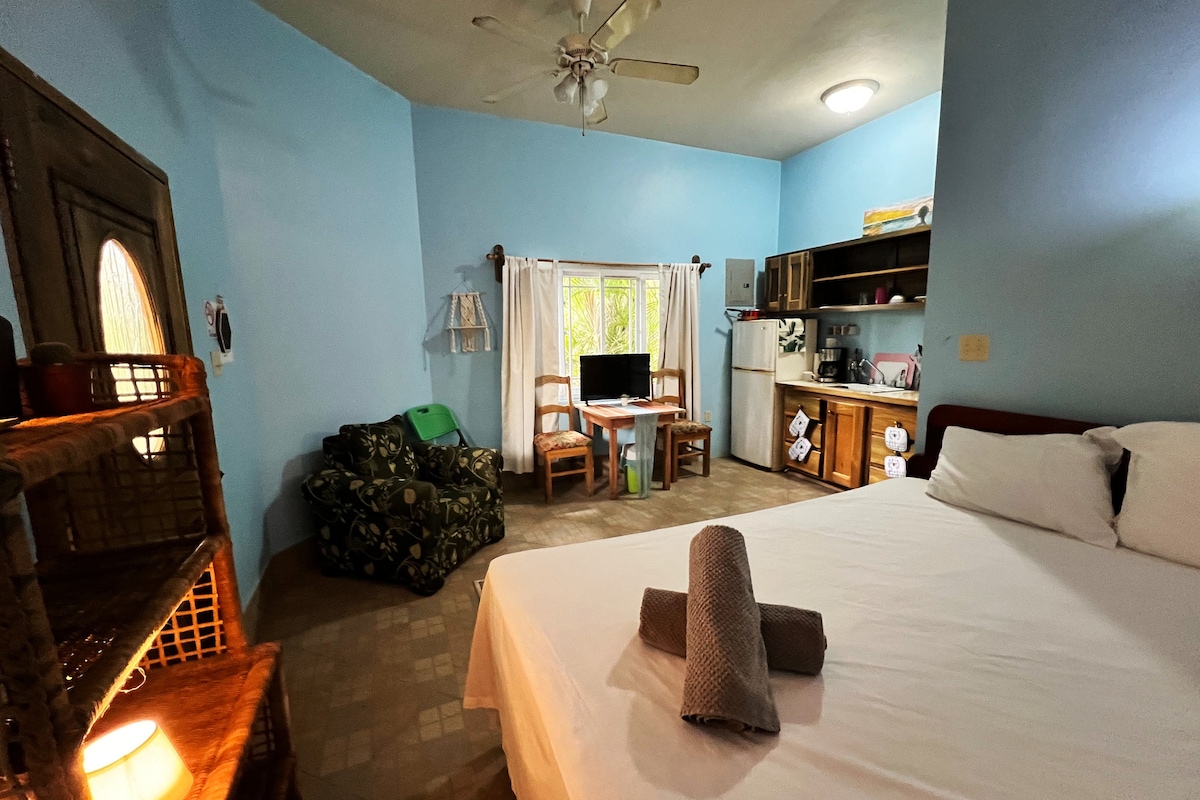 The Mango provides a tranquil, peaceful environment to unwind at the end of a day exploring beautiful Jamaica. Nestled under the shade of a huge mango tree, this suite keeps cool, breezy, & quiet. Equipped with all the essentials you may need for a short or long stay, including a cushy queen bed, full kitchen, hot shower, fans, & your own private entrance. It’s a five minute walk to the beach from the front door of The Mango. Keep it simple at this peaceful and centrally-located place.