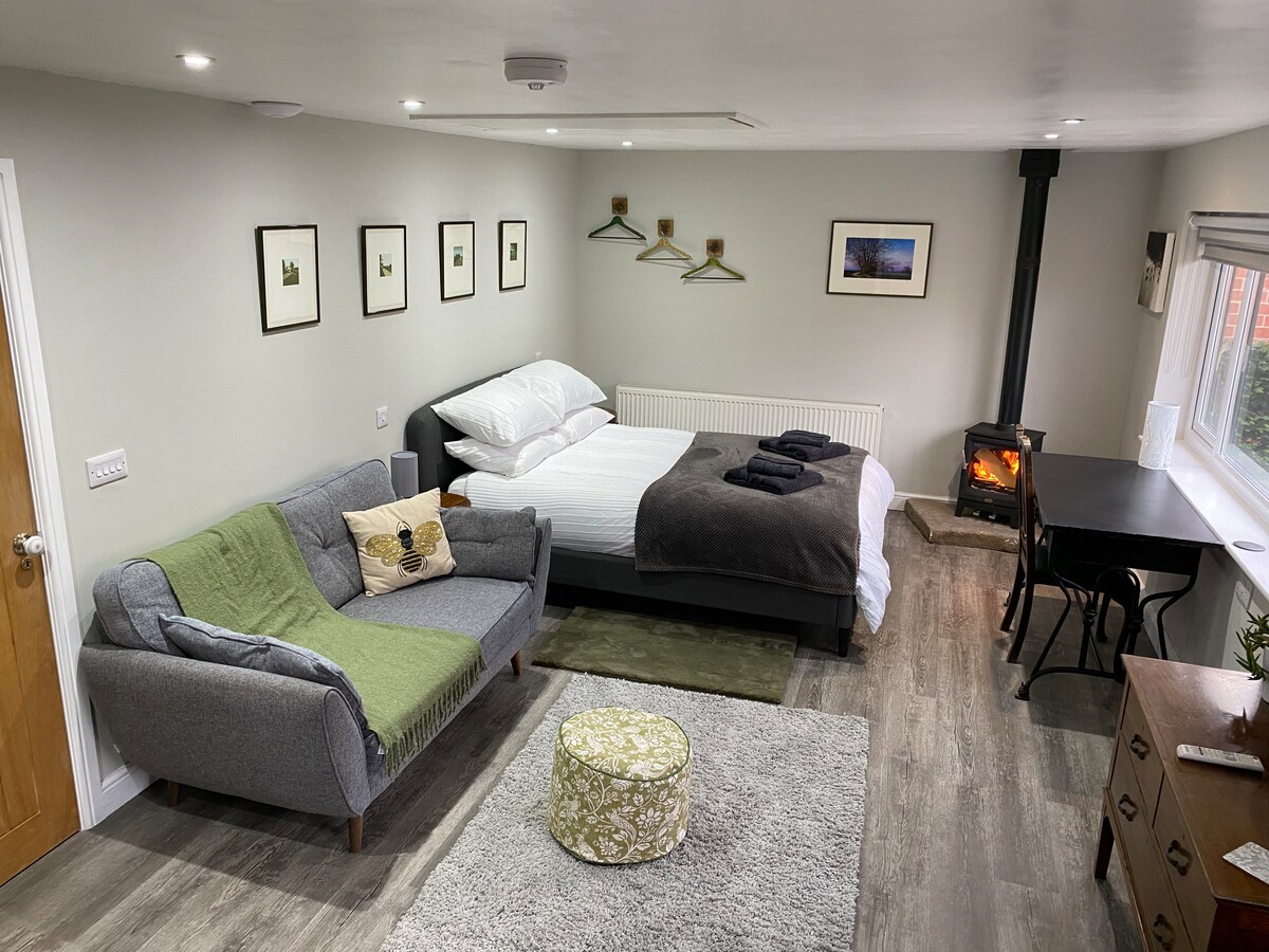Welcome to Drake Lodge: Your Cosy Studio Retreat Escape to our charming, detached, self-contained annex, nestled at the end of the grounds of a family home. Just a 10-minute stroll from the town center, this cosy and inviting space offers the perfect blend of comfort and convenience. Whether you're seeking a romantic getaway, a solo retreat, or a place to call home while working away, Drake Lodge is your ideal destination.