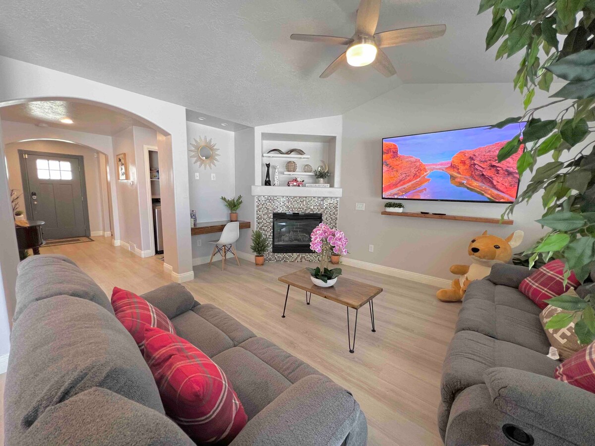 Welcome to your Salt Lake Valley retreat in Taylorsville, Utah—ideally located for skiing, business, and relaxation. Only 12 min to downtown SLC, 10 min to the airport, and about 35–40 min to world-class resorts like Snowbird, Alta, Solitude, Brighton, and Park City. Near USANA Amphitheater, Maverik Center, and the new Taylorsville Temple. Perfect for families, professionals, or winter adventurers seeking comfort, space, and unbeatable convenience.
