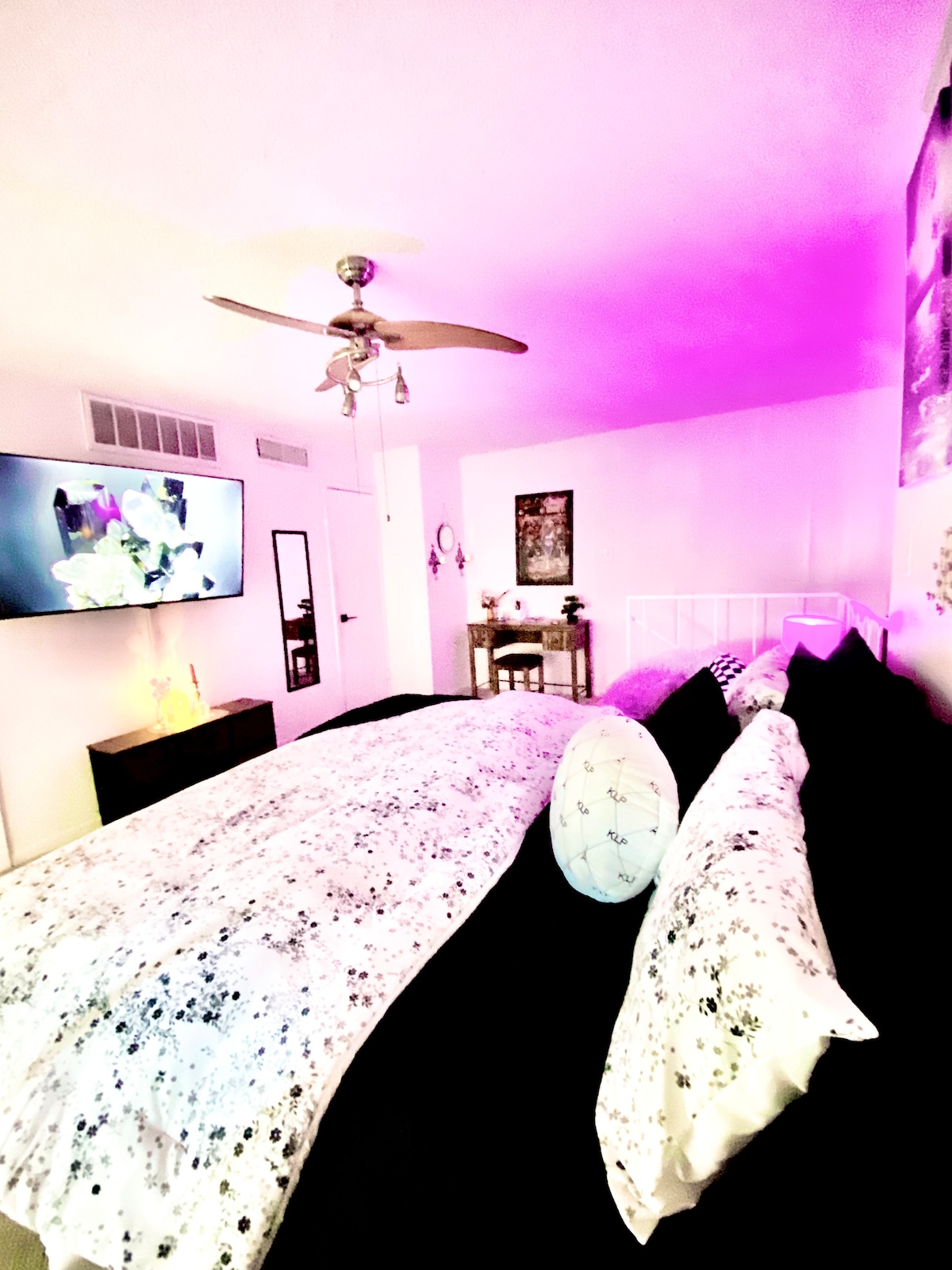 Relax in this super vibey, plant-filled studio with a private downtown view balcony and access to a 24/7 rooftop pool. Guests rave about the calming energy, greenery, décor, and peaceful atmosphere, perfect for unwinding or working. Centrally located and safe, this dog-friendly quiet retreat also features high-speed Wi-Fi and is ideal for solo travelers, couples, or business. With a host who goes above and beyond, experience the peaceful energy that makes this space unforgettable. Book now!