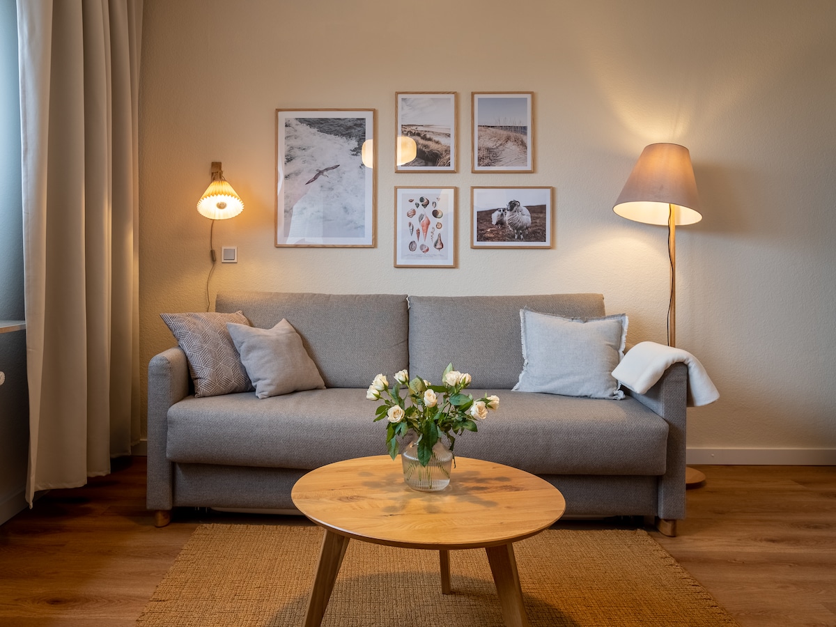 The stylish, elegant and comfortable apartment "Ankernest," completely renovated in the spring of '22, newly designed and tastefully furnished, welcomes you with 50 m² of well-designed space on one level in the heart of Germany's most beautiful North Sea island - quietly located in one of the best locations in Alt-Westerland on the 1st floor of a terraced house-like end unit - and yet a stone's throw from the city + train station. For visitor's tax, see "Other rules", digital guest cards sent by email.