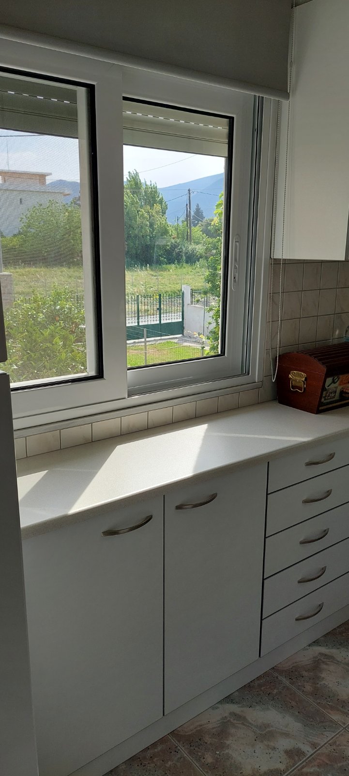 Charming vacation home of 57sq.m right at the seafront of Corinthian gulf. A north/west oriented 1st floor, two bedrooms, apartment with a breathtaking view of the sea and the imposing mountains of Roumeli. A north/west oriented 1st floor, two bedroom, apartment with a breathtaking view of the sea and the imposing mountains of Roumeli. It’s a fully equipped apartment that can accommodate up to five people. Tip: dont miss the mobile bakery that passew right outside. Try the chocolate croissant!