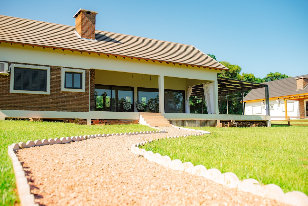 Forget your worries and enjoy good times in this spacious and serene space, with a fantastic landscape! Located in the heart of the VALE DOS VINHEDOS in Bento Gonçalves, this beautiful house offers its guests a large patio overlooking beautiful vineyards. The house has 500mb Wi-Fi internet, air-conditioning in the living room and kitchen, heaters in the bedrooms and a barbecue grill in the kitchen. A charming new house ready to welcome you. I am available for any questions!