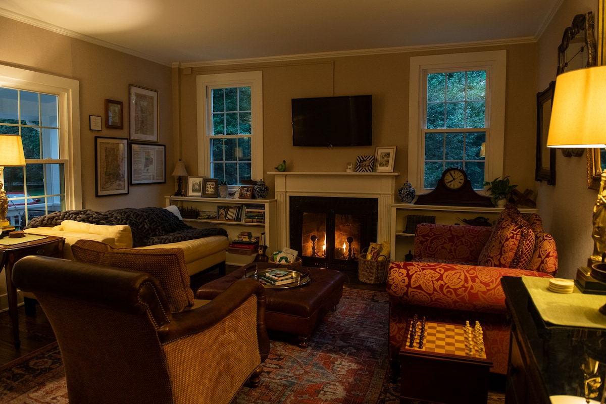 The Cottage at The Grange is located on the peaceful Potowomut River. It is a beautiful and newly renovated 2 bedroom (king, 2 twin beds) / 2 full bath home with all the modern amenities and conveniences expected from a luxury short-term rental while maintaining the historic charm of this colonial estate. Cook a gourmet meal in the stocked kitchen or BBQ on the deck. Situated on 11 pristine acres enjoy private tennis/pickleball courts, kayak access to Greenwich Bay and much more!