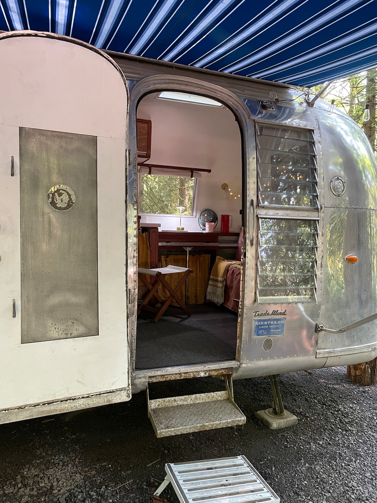 Dream of childhood vacations gone by in a cozy, pet-friendly camper tucked away in a vast rainforest on the Olympic Peninsula. Audrey is our lovingly restored 1964 vintage Airstream. Sip your coffee on your private deck each morning listening to the sounds of nature around you. Drive to the surrounding Victorian towns and in the evenings, after a long hike in the Olympic National Park or whale watching in Port Townsend, grill steaks on the BBQ and gather around the fire for stories and s'mor