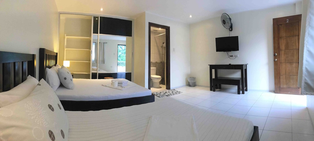 Our space is perfect for families or groups. Why rent separate hotel rooms when you can book this townhouse for yourselves. Our two bedroom townhouse has kitchen space. There's an outside sitting area and BBQ grill available on request, perfect for to do barbecue and drinks . Enjoy mountain view @2ndfloor. Restaurant, 24hours convenience store, bakery, wet market and public transport nearby . White Beach is 5 minutes away. Our caretaker is on call should you have any inquiries.i