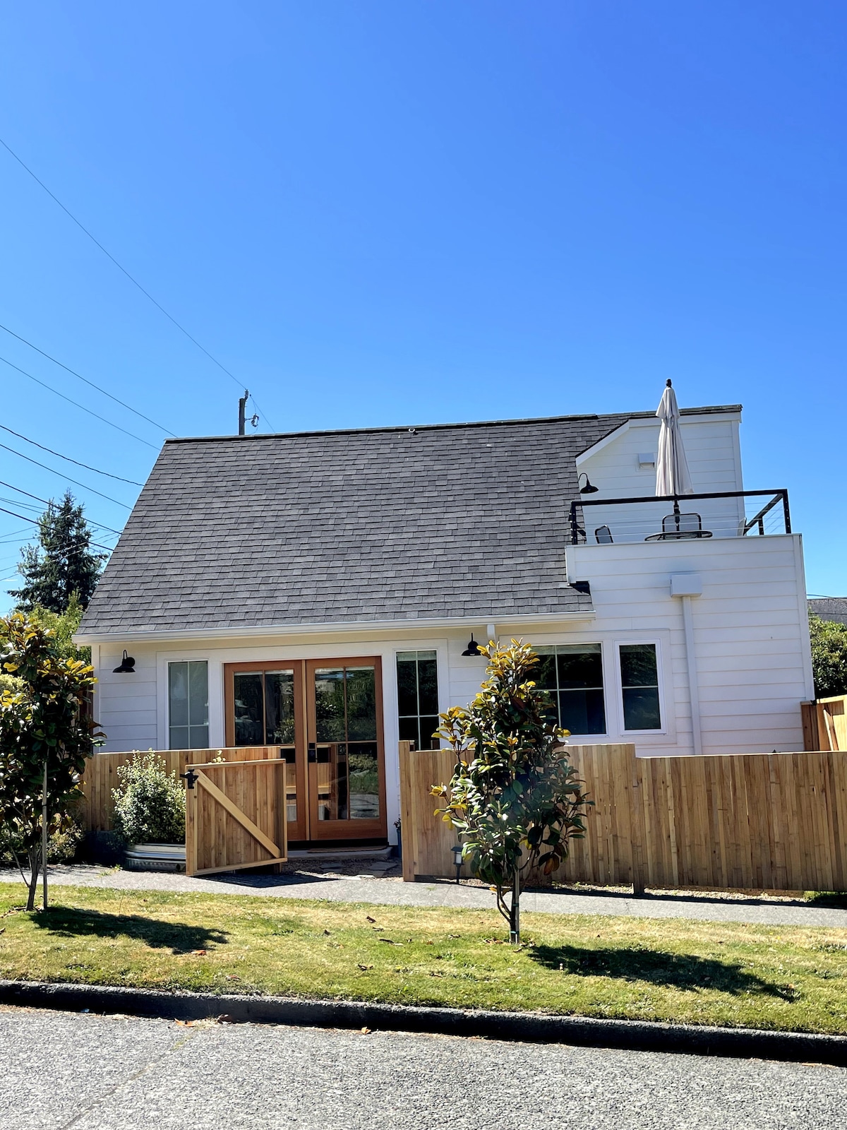 Centrally located custom built guesthouse minutes from downtown, airport, and beach. Walk to coffee/deli or 5m drive to local businesses, restaurants, and groceries. 1 bedroom, 1 bathroom guest house with a qn bed on the main level, addt'l qn bed in loft area leading to view deck accessed via "ship's ladder" stairs. Outdoor patio with seating. Qn sleeper sofa in livingroom area with large smart tv and LED fireplace. Ideal for small families and couples. 4 guests.