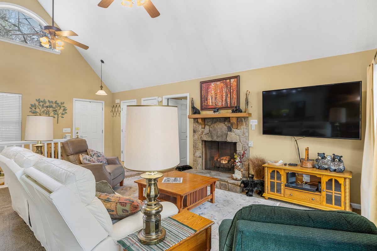 A beautiful mountainside cabin with sweeping views! Features King log bed w/Casper mattress, Queen sleeper sofa & Twin Daybed w/Twin Trundle. Huge Hot Tub makes it feel like a luxury spa! Gas grill on the back porch, overlooking the mountains. Huge 2+ person Jacuzzi w/Waterfall & giant stacked stone mirror. Wood-burning fireplace & fully-stocked kitchen make it like home. Enjoy seclusion, romance and indulgence at its finest!!! We’ll be decorated for Valentine’s! ask about our Romance Packages!