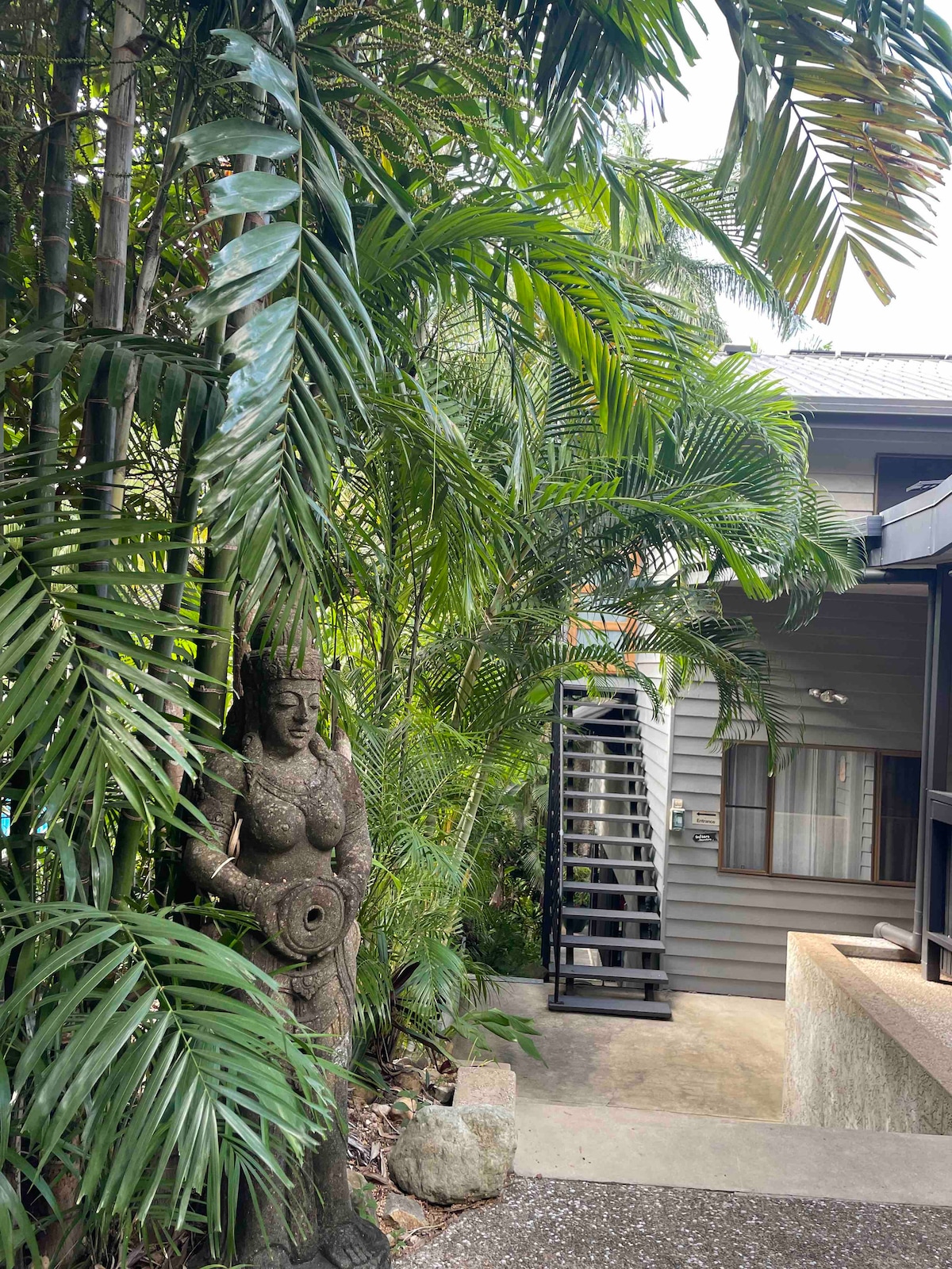 Luxury Studio in Rainforest surroundings on the border of Cannonvale / Airlie Beach Close to the Beach, Boardwalk , Abel Marina and short walk / ride to Airlie and walk to Coles. Free bikes and Wifi. We live upstairs, we have 3 little ones and a golden retriever George. We are a busy family in and out a lot of the time. Your retreat is downstairs and a completely seperate space đ