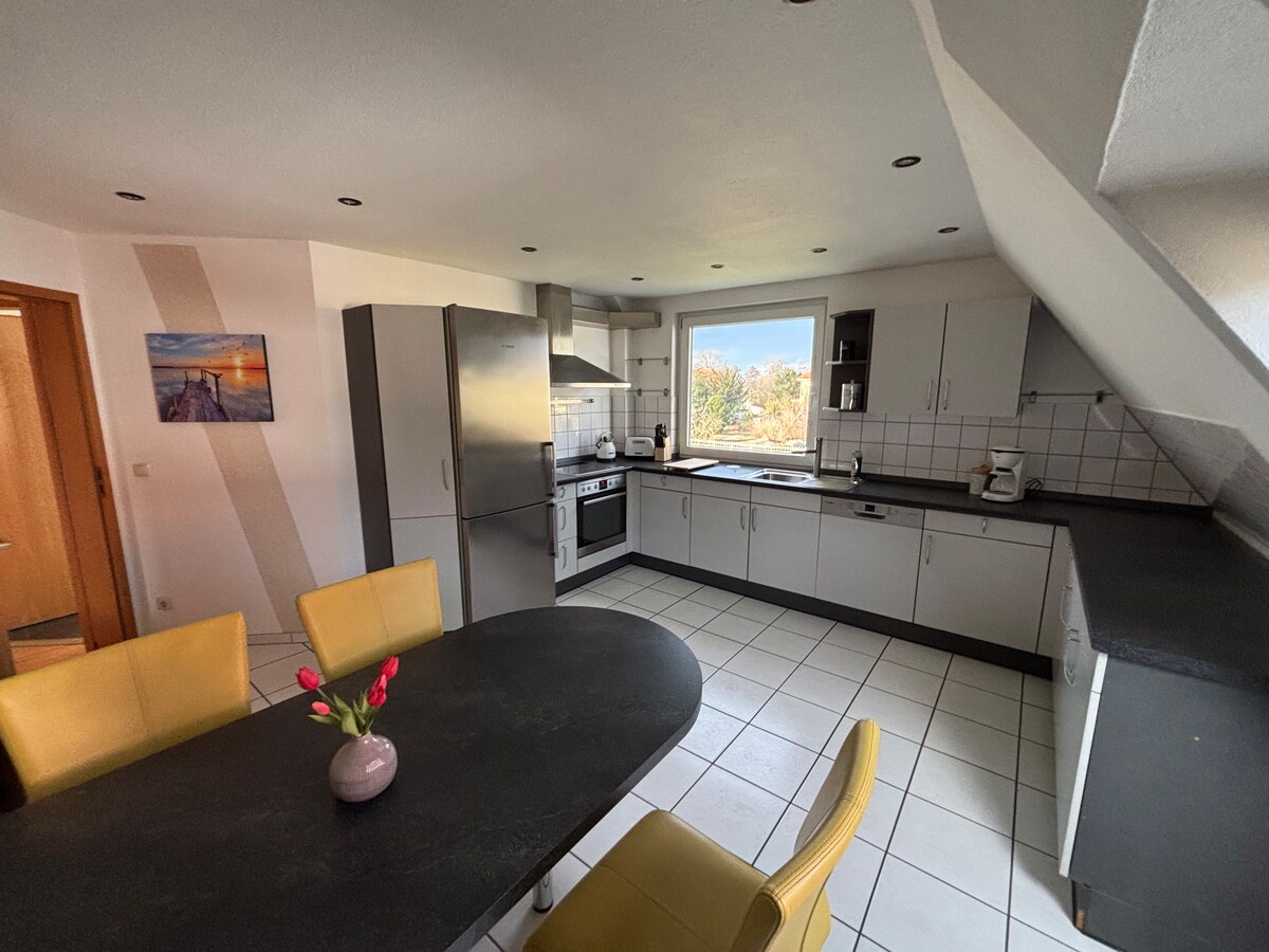 Enjoy a quiet stay in a beautiful apartment that is part of a semi-detached house and has a park-like property. 3.5 rooms, kitchen, bathroom - Bedroom with adjoining additional room (only separated by curtain) - another bedroom - Large hallway with living room with TV and dining room with open kitchen - Parking spaces for cars