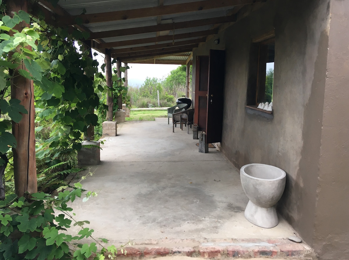 Comfortable cottage in Old Belvidere with a large Garden. Newly renovated and furnished. Ideal for a couple with kids. The garden is enclosed and well behaved pets are welcome. Inverter for load-shedding. Air conditioning in bedrooms and living room for cooling and heating as well as gas heater. Electric blanket on main bed. Space for sports equipment outside of back door. Kayaks available for guest use. Lounge has a TV with an active Netflix account. Fibre internet(25 Mbps) with WiFi.