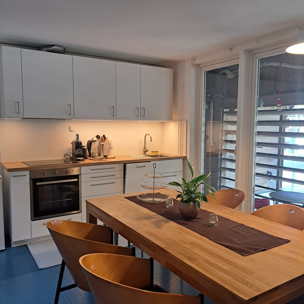 Our house is located in the centre of Kallnach, a well-kept village in the region of the Three Lakes. The bright and friendly flat for exclusive use is on the top floor. The flat has a large living room, two bedrooms, kitchen, bathroom and a small balcony. There are three restaurants and a small supermarket (7/7) in the village. The train station is 650m from the house.