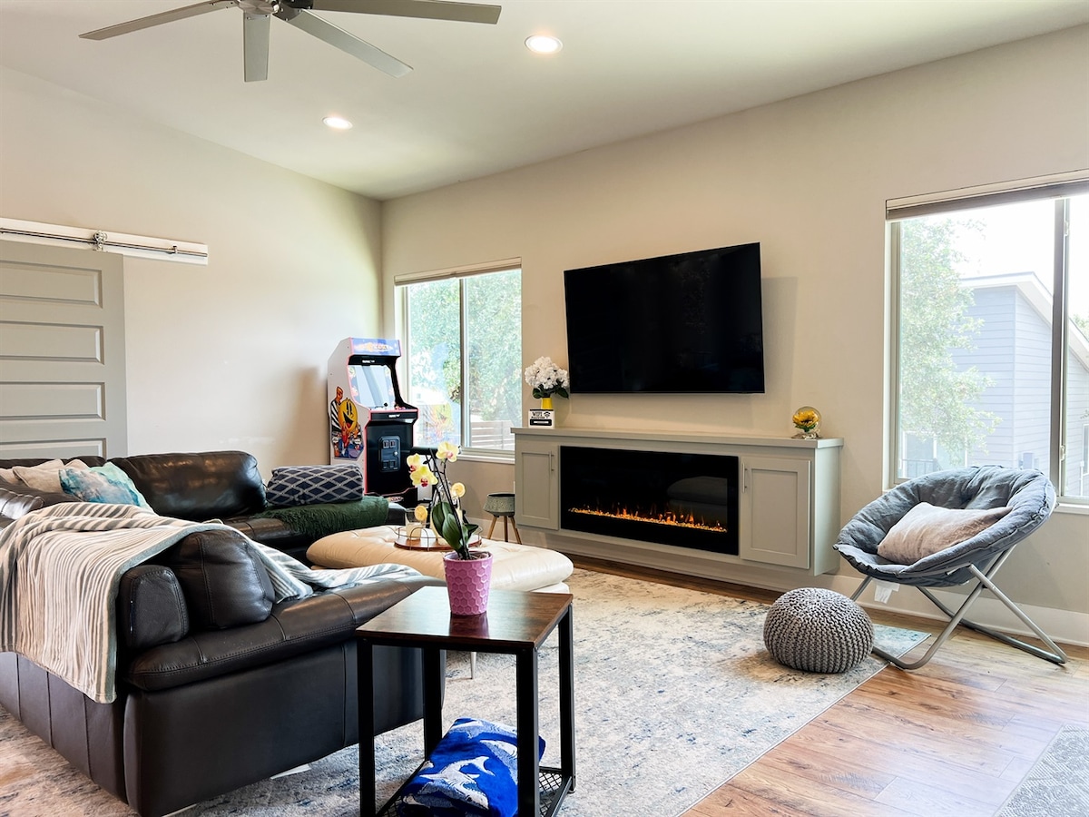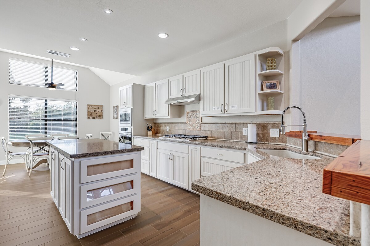 "My family had a truly great time here! Amenities A++. Beautiful and fun!" --Matan. Welcome to Lago Vista Vibe, a serene Texas Hill country getaway. Enjoy the elegant backyard and free heated pool with waterfall, cabana, and swim up bar. Perfect for families with kids, small groups and/or couples looking for a retreat. Adventurous? Enjoy scenic hiking, local craft beer, lakeside parks with boat ramps, fishing, picnic areas, wine tasting, golfing, views, and zipline adventures nearby.