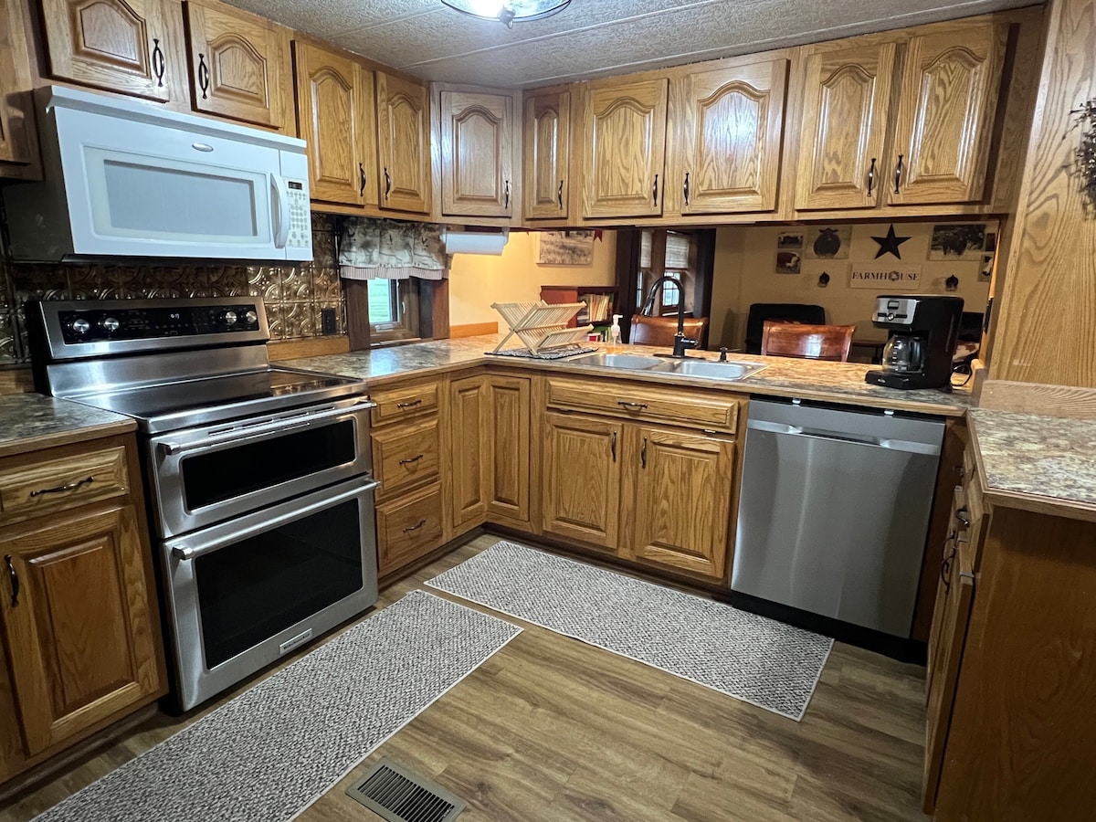 The Prairie House has the romance of the country but all the luxury and style of a modern home. Newly renovated with a large upstairs deck to enjoy environment, wood ceilings, walk in rain shower, large granite kitchen island and much more. Walking distance to the convenience stores. Located right off Hwy 60.