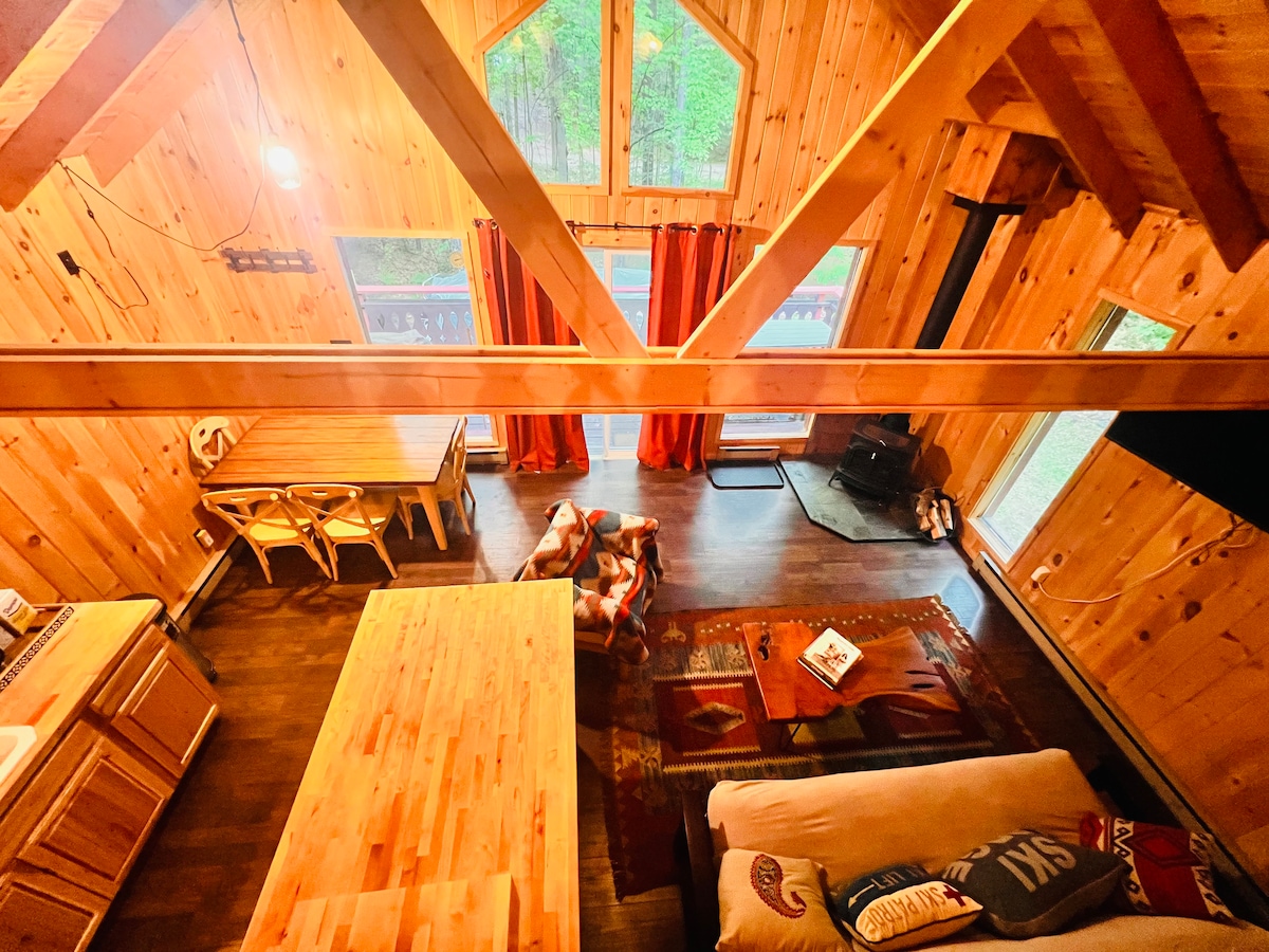 A cozy A-frame nestled in the Ausable River valley of the Adirondack Mountains. Jay, NY is famous for its Old Covered Bridge and the Jay Rapids. The cabin is a short drive from Whiteface Mountain (~12 min) and Lake Placid (~25min).