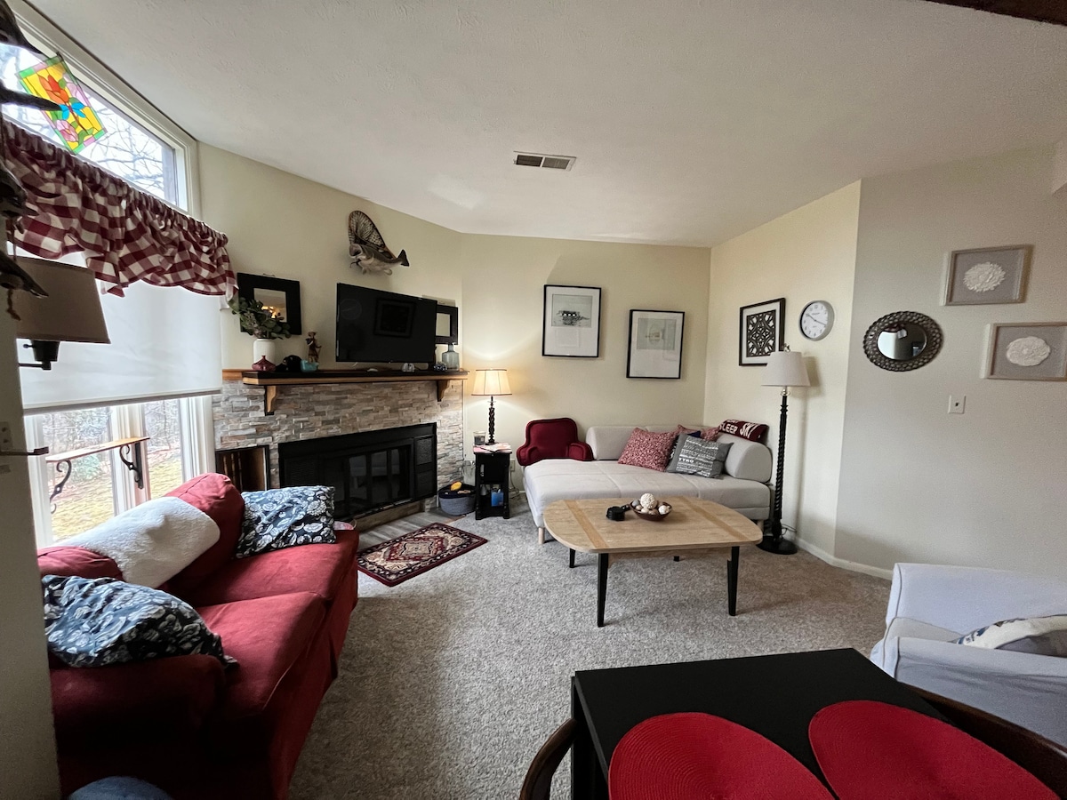Cozy 1BR Wintergreen condo ⛷️❄️ 5-minute walk to the ski slopes, resort village, and mountain-too market, with snow tubing only minutes away. Enjoy a fully stocked kitchen, premium coffee and teas, cooking oils and spices. Relax by the wood burning fire and enjoy a smart TV, fast WiFi and games. Comfortable queen bed in the bedroom plus new queen sleeper sofa in the living room. Private furnished patio with peaceful wooded views and close access to the village for après-ski.