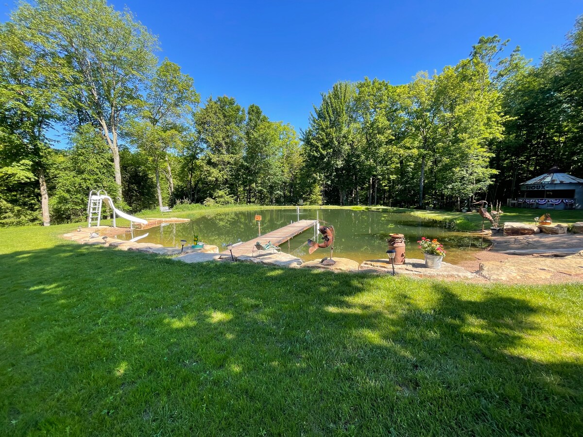 Welcome to Golden Pond Cabin — a one-of-a-kind country retreat between Mosinee and Stratford featuring a private pond with sandy beach, fire pit, slide, kayaks, and unforgettable views. Just minutes from The Big Eau Pleine Reservoir, the Rock Ridge Orchard event barn, and 30 minutes to Granite Peak for skiing, this immaculate guest suite offers a full kitchen, in-unit laundry, and space for boats and trailers. Owned by Golden Pond Rentals and professionally co-hosted by Sioux Falls Stays.