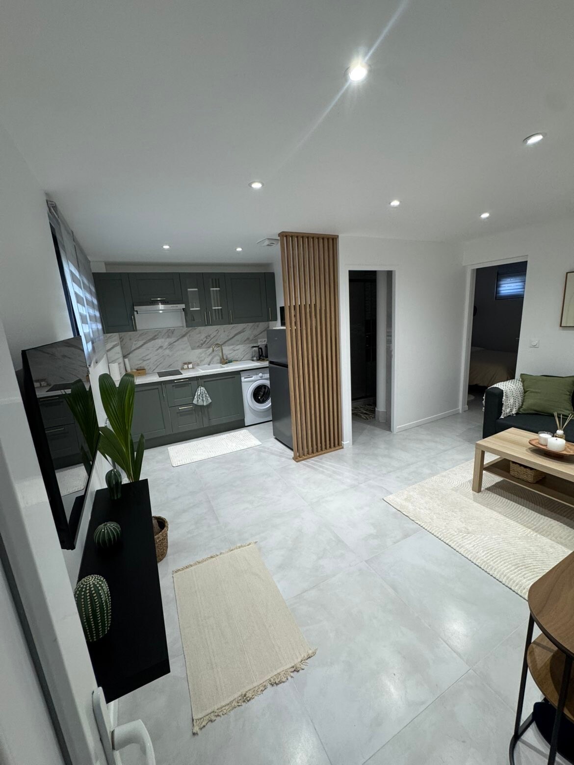 New, cozy and conveniently located apartment. Ground floor accessible for people with disabilities. Bright living room with access to a large balcony with sofa bed. Close to all essential amenities, 15 minutes from Orly airport, TVM access, line 14 (10 minutes from Paris), bus 131 (towards Paris 13). Total station opposite and close to the Belle Épine and La Cerisaie shopping centers as well as restaurants, supermarkets nearby.